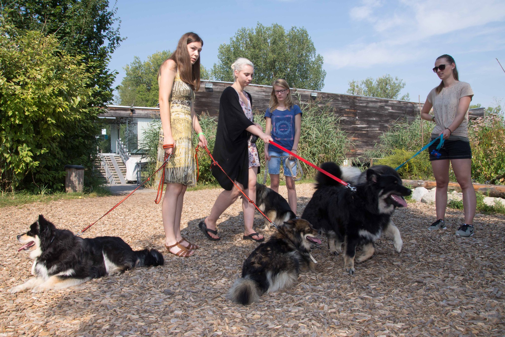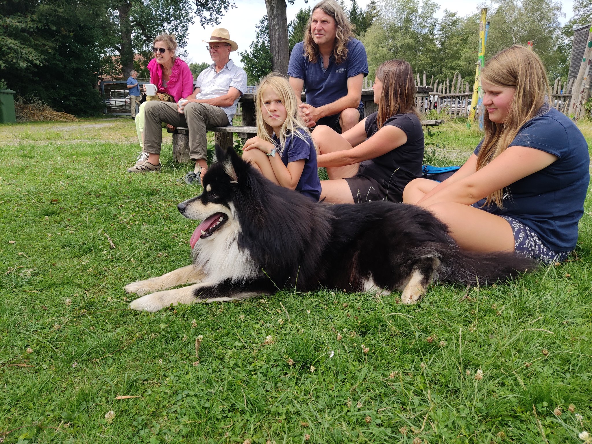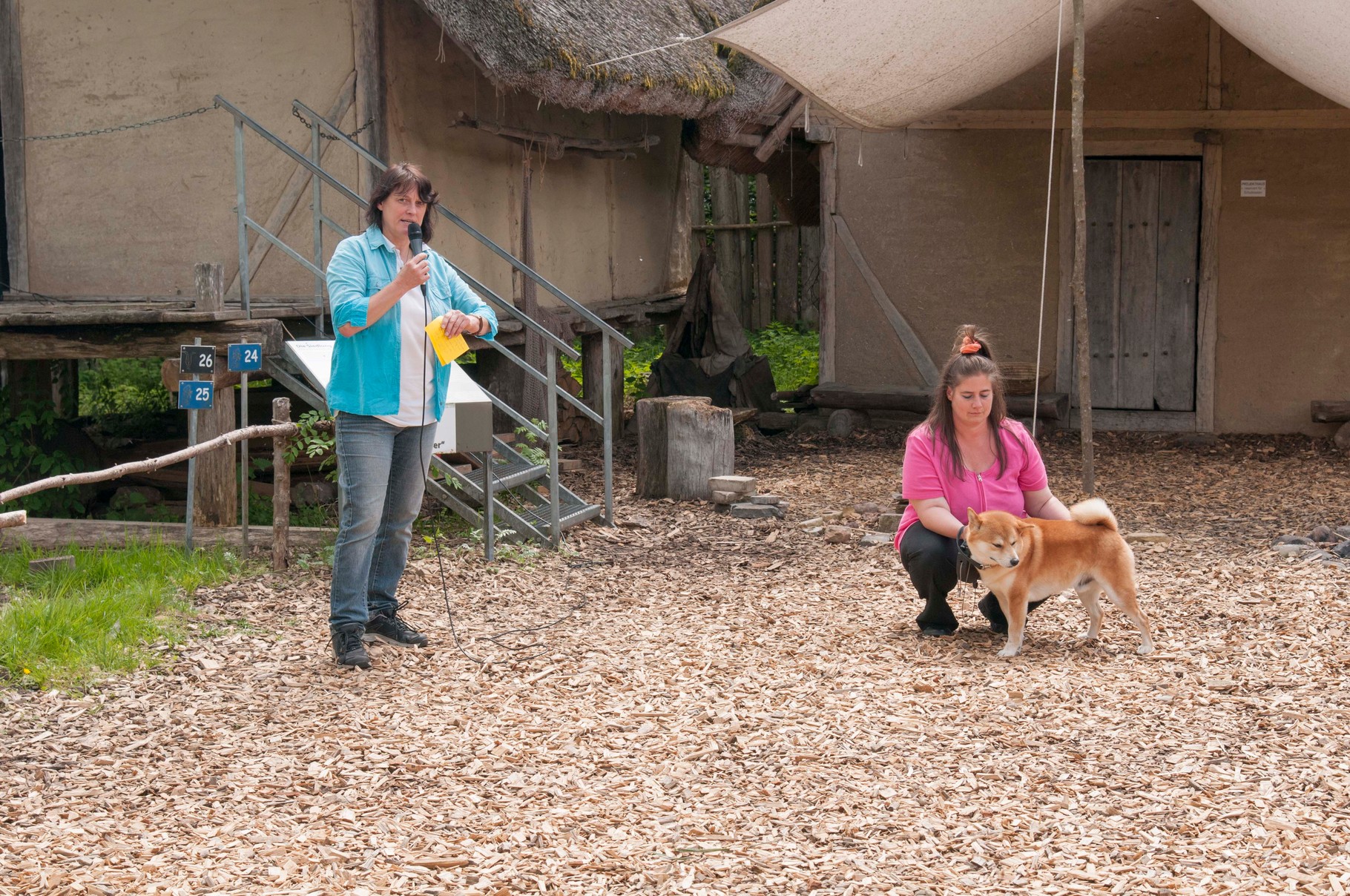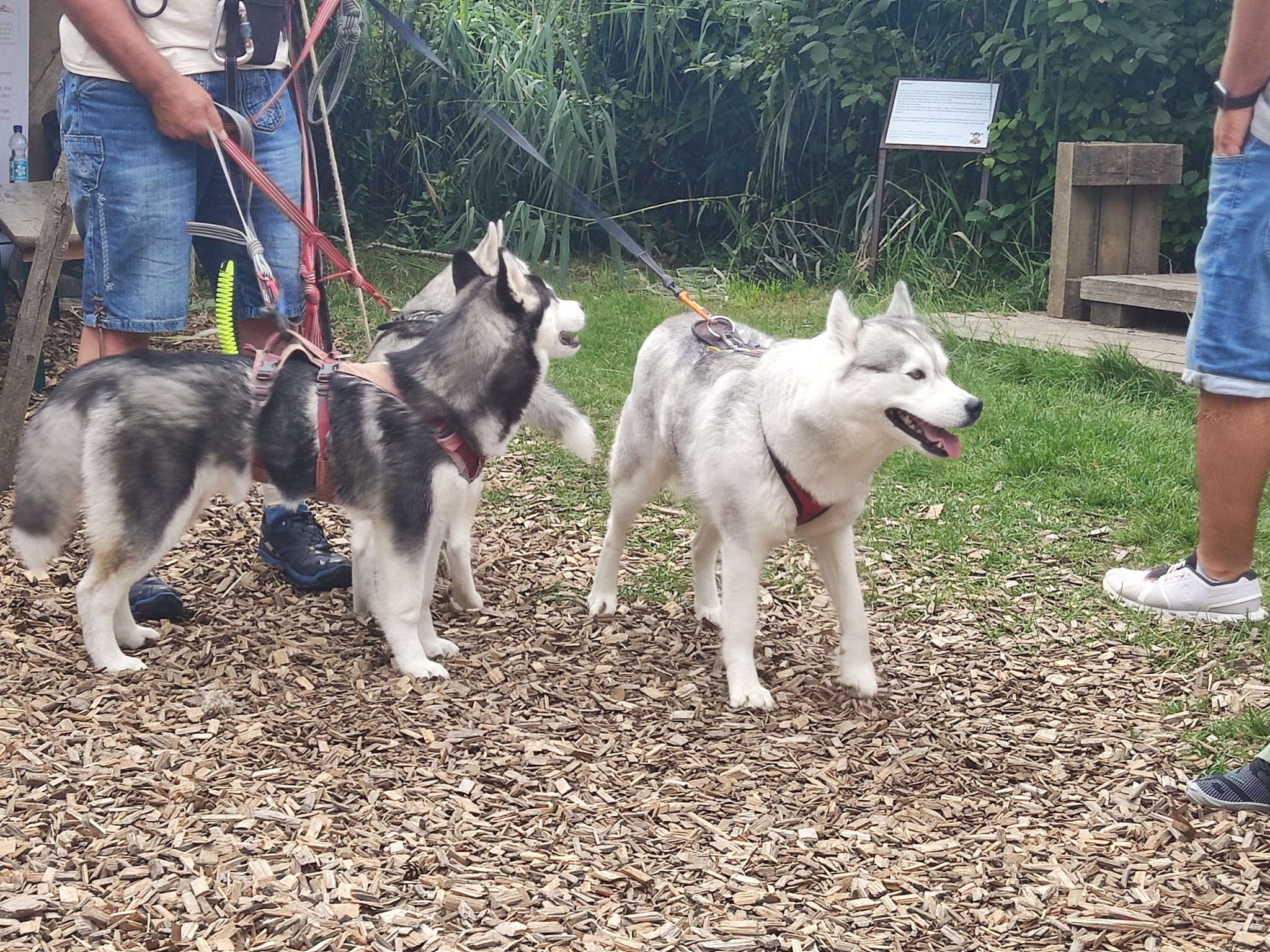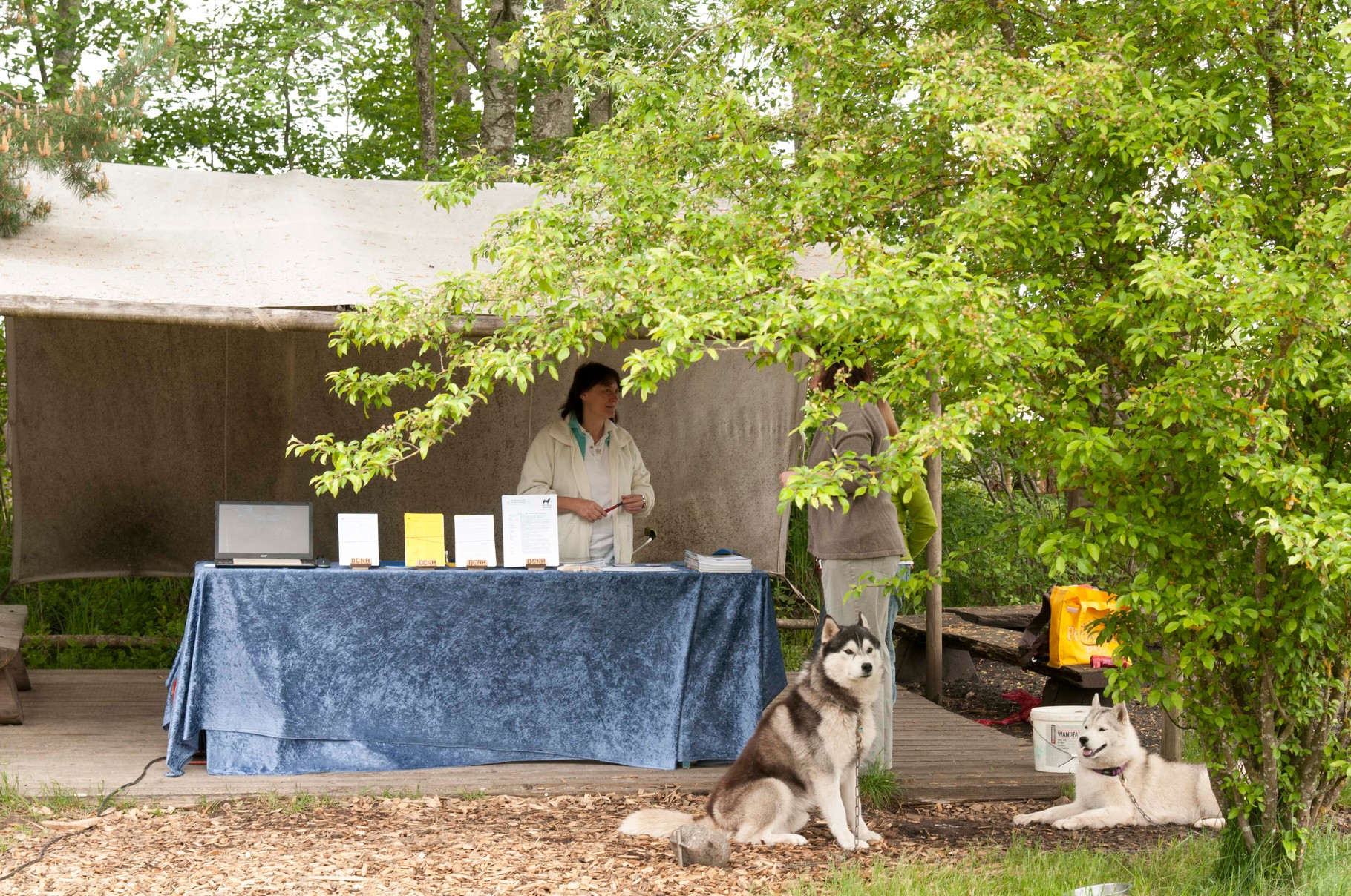 Da sich unsere Nordischen am besten für solche Zwecke eignen, hatten wir das Vergnügen an einem schattigen Platz, inmitten von nach gebauten, steinzeitlichen Häusern, unseren Infostand auf zubauen und unsere nordischen Hunde zu präsentieren.